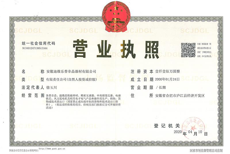 為響應國家標準化發展綱要,推動高質量發展,建設社會主義現代化國家。 安徽迪維樂普非晶器材有限公司、非晶合金電力互感器材料研究中心;為促進標 準化發展、提升標準化水平;實現企業有序發展、有規可循;產品質量有據可依、 方便客戶甄別選用,特制定本企業質量標準。